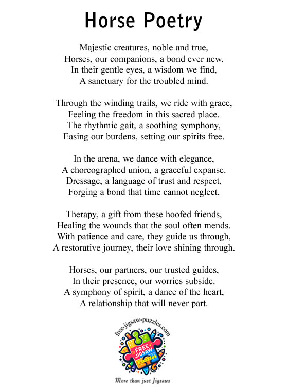 ( Printable Horse Poems - free to print and share courtesy of free-jigsaw-puzzles.com - attribution appreciated, not required)